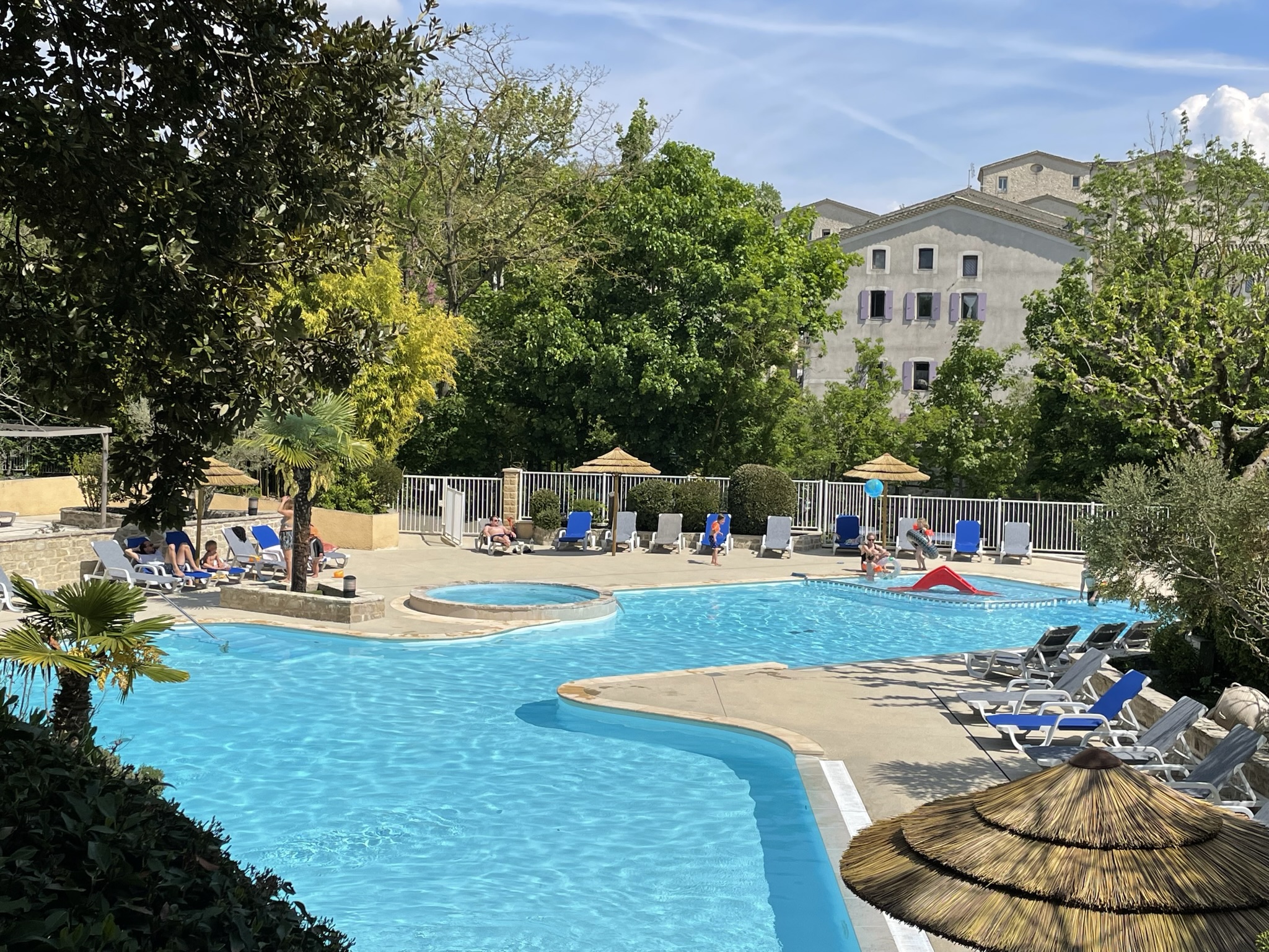 Plongez dans notre piscine aux formes harmonieuses, idéale pour quelques brasses rafraîchissantes.