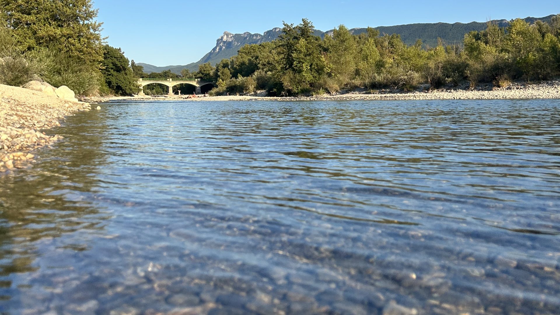 On entend surtout le bruit de l’eau. La Drôme qui file entre les galets, la Gervanne un peu plus discrète… et puis les oiseaux dans les arbres centenaires du parc.