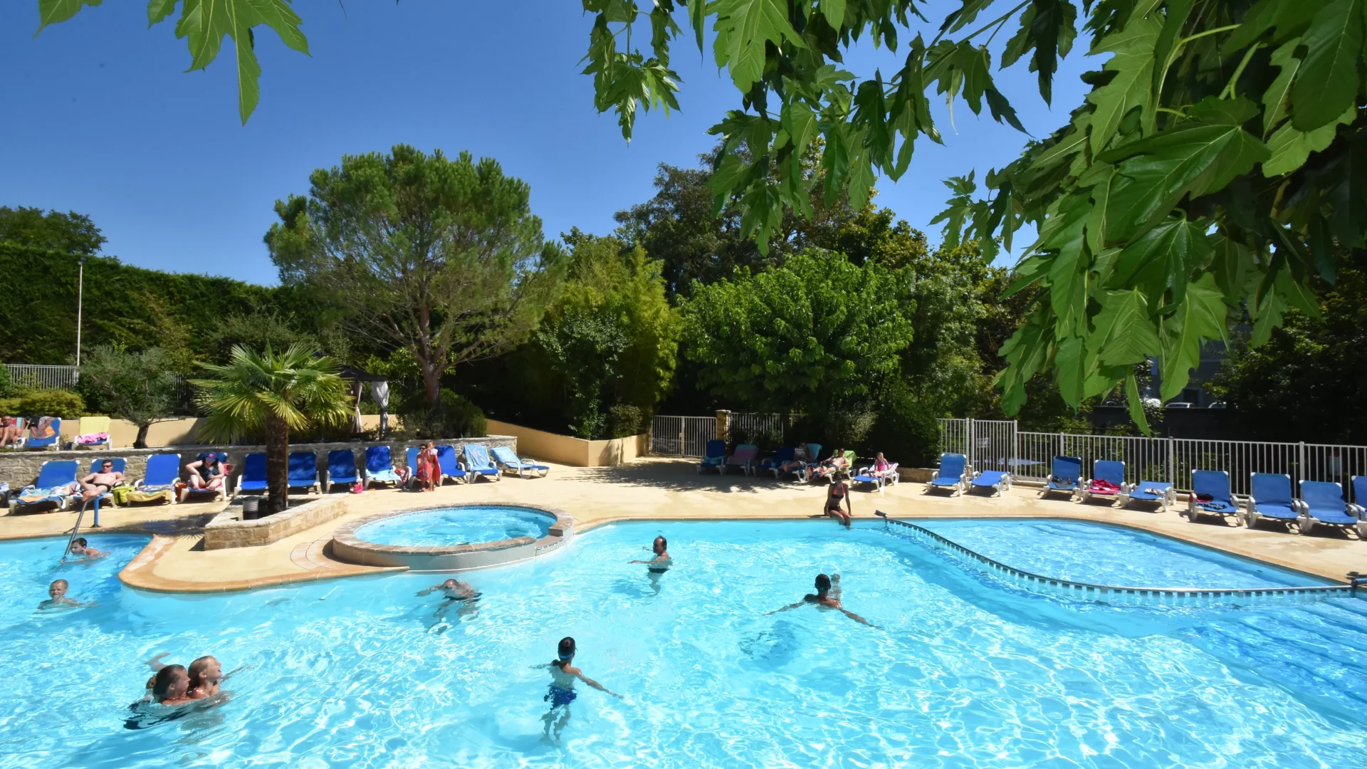 les enfants s’amusent dans la pataugeoire, les sportifs nagent tôt le matin, et les amateurs de farniente profitent des transats