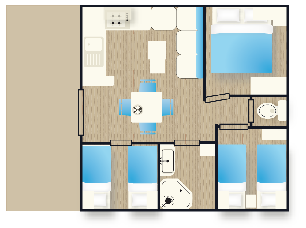 - 1 chambre 3 lits 80*190 (dont 1 superposé)