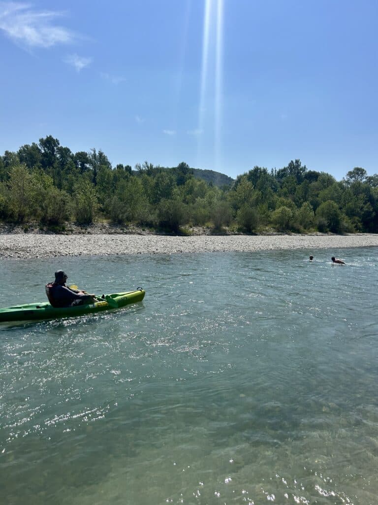 Le niveau d’eau est idéal pour le canoë : ni trop bas, ni trop calme. On profite pleinement du courant et des paysages.