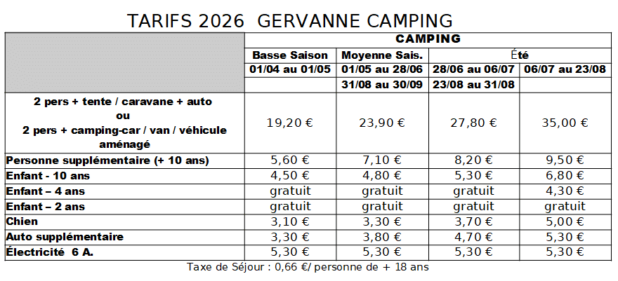 📸 Retrouvez juste en dessous la grille tarifaire 2026 des emplacements.