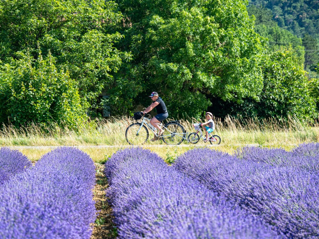 La piste passe tantôt au bord de l’eau, tantôt à travers les champs, avec des vues incroyables sur le Vercors. En chemin, vous croiserez lavandes (juin-juillet), tournesols, chevaux, et de nombreux coins de baignade.